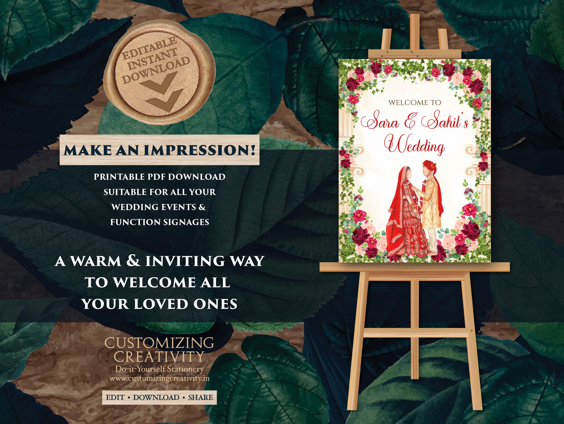 Being an editable Royal Indian Welcome Signs or Indian Wedding welcome sign Indian template for your Desi wedding signs instant download, this set saves busy brides valuable wedding-prep time, while still giving you the complete Sikh Wedding welcome template & stationery of your dreams for your Hindu Wedding Signs!