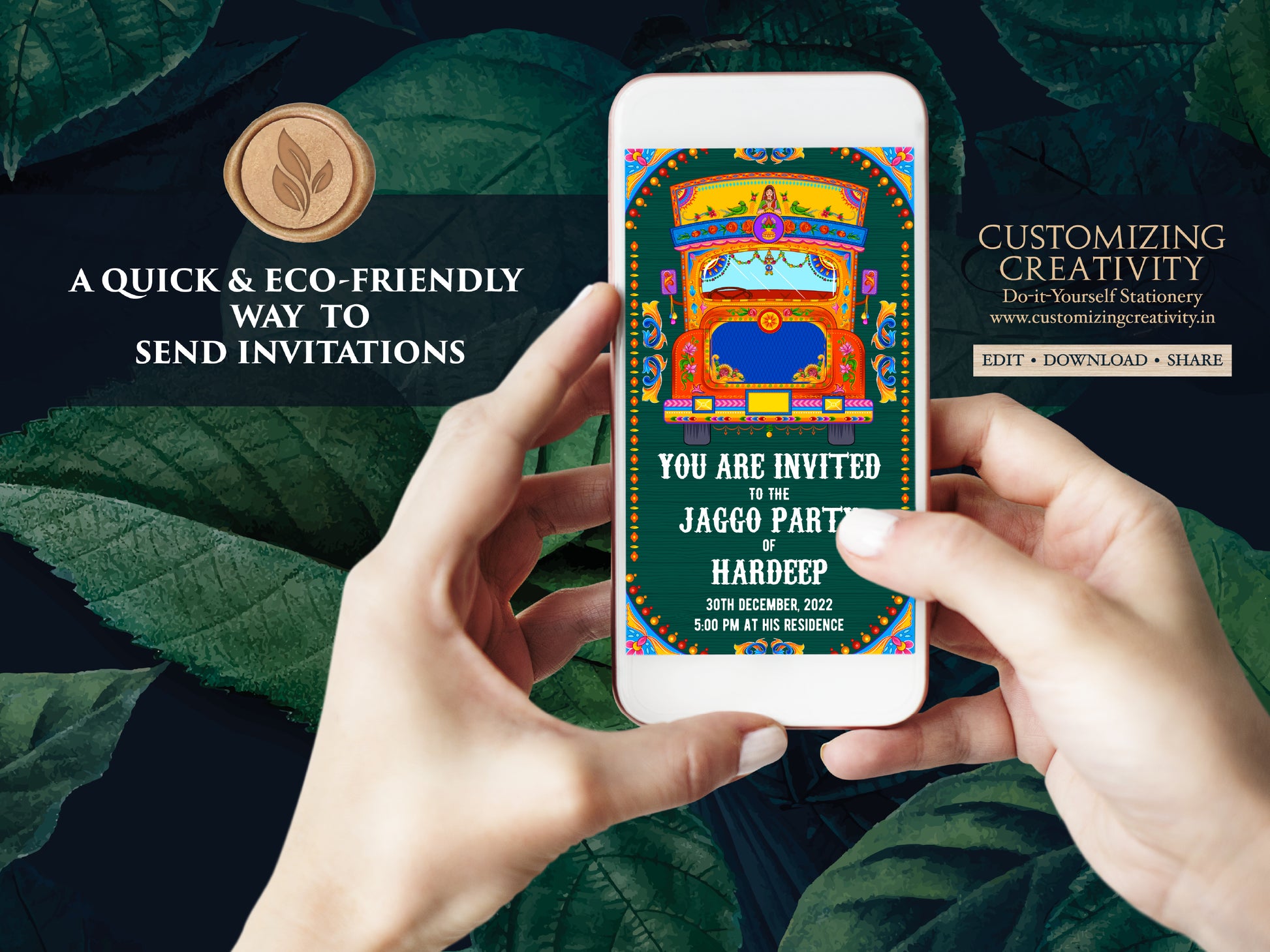 Jago Party invite & Bollywood party invite digital, Jaggo invites as Indian truck art invites, Jaggo Night invites, Punjabi party invitation